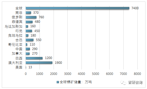 2017年全球探明鎳基礎(chǔ)儲量約7400萬噸,資源總量14800萬噸,基礎(chǔ)儲量的約60%為紅土鎳礦,約40%為硫化鎳礦。2017年全球鎳礦產(chǎn)量為210萬噸,2016年全球鎳礦敞亮為209萬噸。
