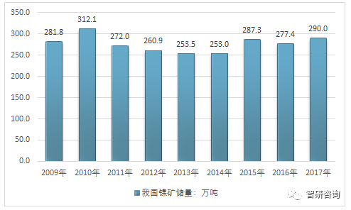2009-2017年我國鎳礦儲量統(tǒng)計