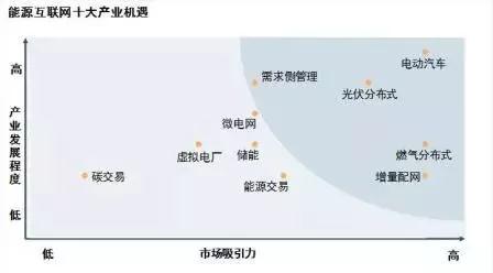 在實體網(wǎng)層面,以電力網(wǎng)絡(luò)為主體骨架,融合氣、熱等網(wǎng)絡(luò),覆蓋包含能源生產(chǎn)、傳輸、消費(fèi)、儲存和轉(zhuǎn)換的整個能源鏈。商業(yè)機(jī)遇包括了分布式能源發(fā)電、微電網(wǎng)建設(shè)、增量配網(wǎng)、售電、電動汽車等。