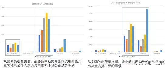 2018年的補貼政策分為三個不同的階段,按照2017年之前、過渡期和6月12日按照2018年的補貼核算。在2018年1-5月份,總計配套新能源汽車11.8萬臺,出貨量為5.57Gwh。同期中國市場所有的動力電池的出貨量為12.73Gwh,CATL一家占了43.75%的份額,接近一半。從絕對裝車的數(shù)量來看,主要為純電動乘用車、插電式混合動力乘用車和純電動客車,分別為81597、20075和14116臺,由于單車安裝電池量不同的細分市場的差異性,純電動乘用車和純電動客車分別為2.78Gwh和2.39Gwh,以電池的量來算占93%。