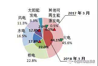 圖2 2017及2018年3月歐洲OECD國家發(fā)電結(jié)構(gòu)變化