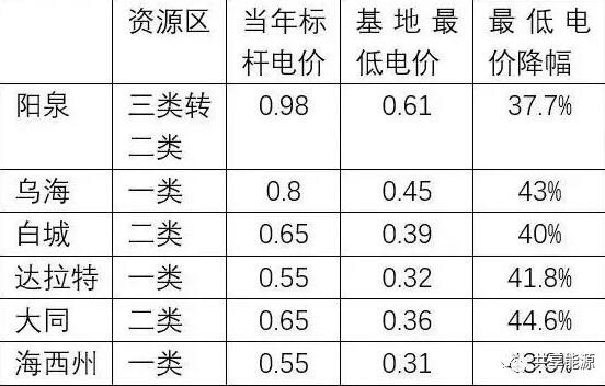 領(lǐng)跑基地投標(biāo)電價(jià)不斷刷新最低電價(jià)---第三批領(lǐng)跑基地投標(biāo)中,在白城的0.39元/千瓦時(shí)最低投標(biāo)電價(jià)之后,最低電價(jià)仍在不斷刷新,從達(dá)拉特旗的0.32元/千瓦時(shí)到大同的0.36元/千瓦時(shí),再到青;氐0.31元/千瓦時(shí)。