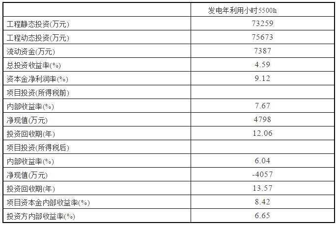 按照機(jī)組運(yùn)營(yíng)期20年,目前上網(wǎng)電價(jià)584元/MWh(含稅)的條件下,計(jì)算本項(xiàng)目的主要經(jīng)濟(jì)指標(biāo)如下: