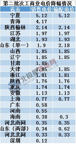 從目前已公布的第二批降電價(jià)省市來看,降價(jià)幅度最大的當(dāng)屬寧夏,銷售電價(jià)中“工商業(yè)及其它用電”價(jià)格的“單一制”電價(jià)和輸配電價(jià)同時(shí)下調(diào)5.12分。下調(diào)后,寧夏可為用戶降低年用電成本約1.23億元。在首批寧夏發(fā)布的降電價(jià)方案中,對(duì)銷售電價(jià)分類結(jié)構(gòu),實(shí)現(xiàn)工商業(yè)用電同價(jià)。據(jù)測(cè)算,這兩批降價(jià)措施實(shí)施后,可為寧夏一般工商業(yè)用戶降低年用電成本共計(jì)約3.45億元。