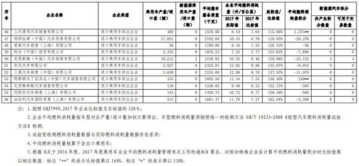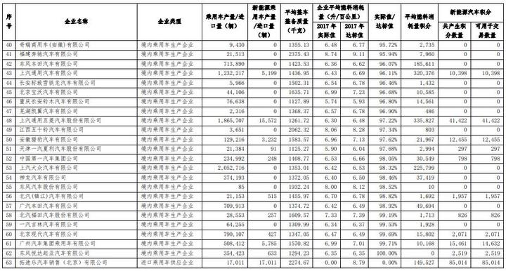 近日,工信部發(fā)布了《2017年度中國乘用車企業(yè)平均燃料消耗量與新能源汽車積分核算情況表》。