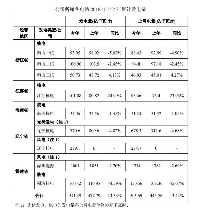 江蘇核電、福清核電上半年累計發(fā)電量較去年同比增加較多,主要原因為田灣3號機組于2018年2月投產(chǎn)、福清4號機組于2017年9月投產(chǎn),發(fā)電量增加較多。