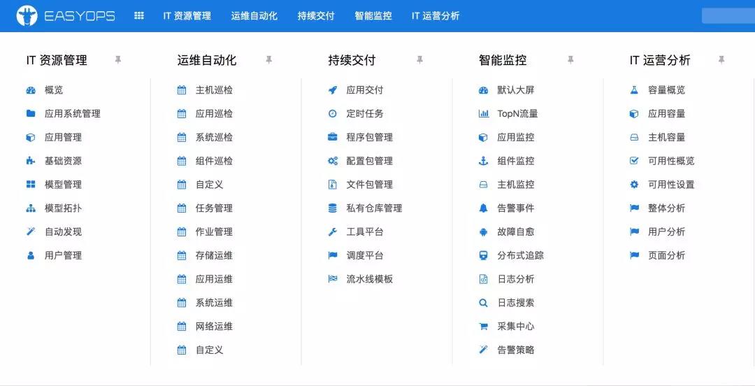 EasyOps產品五大模塊對于IT運維管理能力的著力點各有不同: