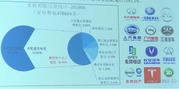 截至2018年6月,通過聯(lián)盟內(nèi)成員整車企業(yè)采樣車樁相隨信息數(shù)據(jù)478604條,其中建設(shè)安裝私人類充電樁320499個(gè),整體未配建率約33.03%,其中約18.5%是由于集團(tuán)用戶采購純電動(dòng)轎車作為出租車、分時(shí)租賃用車等運(yùn)營專用車輛而不需要車企隨車配建充電設(shè)施所致。另一方面,因私購車的充電樁配建約為82.1%。