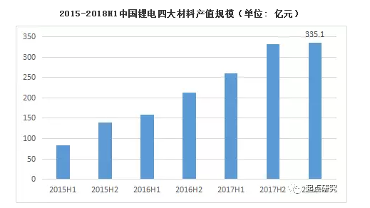 2018年上半年,新數(shù)碼市場(chǎng)平穩(wěn),政策推動(dòng)下的新能源汽車(chē)市場(chǎng)高速增長(zhǎng),成為上游原材料增長(zhǎng)的主要?jiǎng)恿。然而由于產(chǎn)能增長(zhǎng)過(guò)大,企業(yè)競(jìng)爭(zhēng)加劇,四大材料中低端產(chǎn)能過(guò)剩,企業(yè)競(jìng)爭(zhēng)加劇,材料價(jià)格第二季度呈下滑態(tài)勢(shì)。