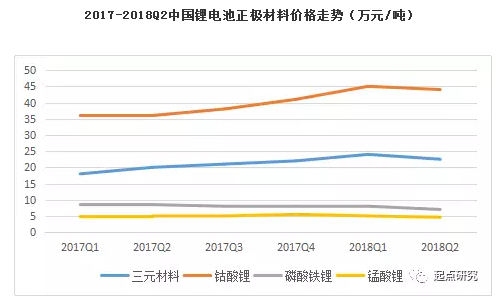 相對(duì)應(yīng)鈷、鋰價(jià)格下滑帶動(dòng)三元正極材料價(jià)格下降,在數(shù)碼電池中,三元材料逐步代替鈷酸鋰,三元材料比重加大。原先以磷酸鐵鋰動(dòng)力電池企業(yè)逐步轉(zhuǎn)型三元材料,加上國(guó)家對(duì)電池能量密度提高中低端磷酸鐵鋰材料不達(dá)標(biāo),因此上半年其產(chǎn)量大幅度下跌。鈷酸鋰,三元材料的價(jià)格較高,接間促使錳酸鋰市場(chǎng)的使用量;動(dòng)力電池方面,新能源汽車(chē)公告目錄車(chē)型配套錳酸鋰電池?cái)?shù)量上升。
