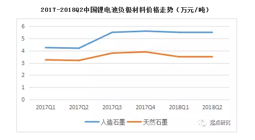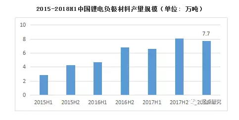2018年上半年負(fù)極材料總產(chǎn)量為7.7萬(wàn)噸,同比增長(zhǎng)16.7%。天然石墨因性能及循環(huán)型等問(wèn)題國(guó)內(nèi)使用企業(yè)減少,價(jià)格出現(xiàn)持續(xù)下降,中間相與硅碳隨著技術(shù)進(jìn)一步成熟,價(jià)格也持續(xù)下滑。今年上半年新能源汽車(chē)產(chǎn)銷(xiāo)量對(duì)比2017年大幅上漲,帶動(dòng)動(dòng)力電池主要負(fù)極材料人造石墨需求增長(zhǎng);在價(jià)格方面,人造石墨關(guān)鍵原材料針狀焦由于環(huán)保整頓等原因,對(duì)針狀焦的需求大幅增長(zhǎng),到2018年上半年針狀焦價(jià)格延續(xù)上升趨勢(shì),并維持在高位,截至目前,國(guó)內(nèi)主流針狀焦成交價(jià)格為約2.2-2.6萬(wàn)元/噸。