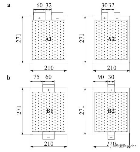 對于倍率性電池如何控制放電過程中的溫度也是一個非常重要的問題,在大電流放電過程中鋰離子電池會產(chǎn)生大量的熱量,熱量在鋰離子電池內(nèi)部的積累會導(dǎo)致溫度的升高,產(chǎn)生較大的溫度梯度,因此鋰離子電池內(nèi)部衰降的不一致,影響鋰離子電池的壽命。如何選擇一個合適的結(jié)構(gòu)就變的尤為重要,德國慕尼黑工業(yè)大學(xué)的Stephan Kosch等【8】通過二維電-熱極化模型對鋰離子電池極耳的形狀和位置對大尺寸鋰離子電池的熱特性的影響研究發(fā)現(xiàn),極耳的寬度和集流體的厚度都會對鋰離子電池在放電過程中的溫度分布產(chǎn)生影響,極耳越窄、集流體越薄則電池內(nèi)的溫度分布不均勻性越大,同時還發(fā)現(xiàn)當(dāng)將電池的極耳放在電池的兩端時能夠有效的減少放電過程中電池內(nèi)部溫度的不均勻性。