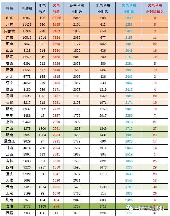 4)四川、云南等水電資源較豐富的省份,火電利用小時數(shù)保持偏低水平。