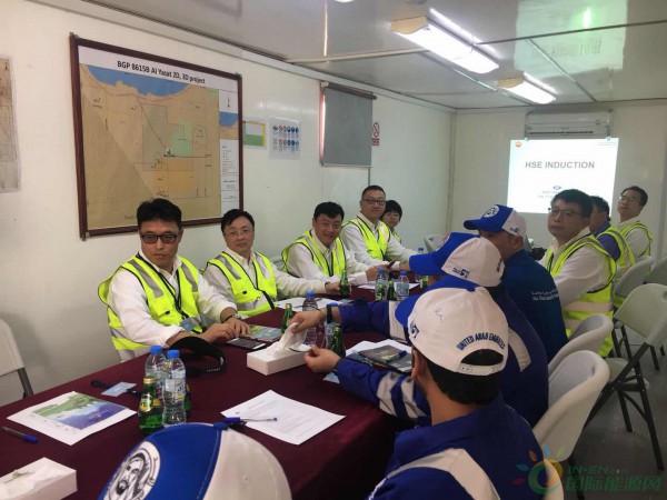 考察團一行首先來到BGP陸海項目勘探區(qū)塊營地,聽取關于考察項目、勘探原理以及安全須知的簡介;隨后對各勘探點進行實地考察,就具體勘探情況與中阿雙方項目負責人進行了交流;并赴BGP國際部下屬的阿布扎比項目部8615B隊營地看望中國員工。
