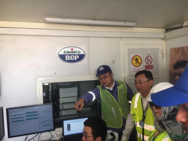 2018年8月7日,應中石油中東公司邀請,駐阿聯(lián)酋大使倪堅赴中國石油集團東方地球物理勘探有限責任公司(BGP)陸海項目勘探區(qū)塊進行考察。我館經(jīng)商參贊賀松、中石油中東公司副總經(jīng)理兼阿布扎比項目公司總經(jīng)理郭月良、Al Yasat公司首席執(zhí)行官阿里等全程陪同。