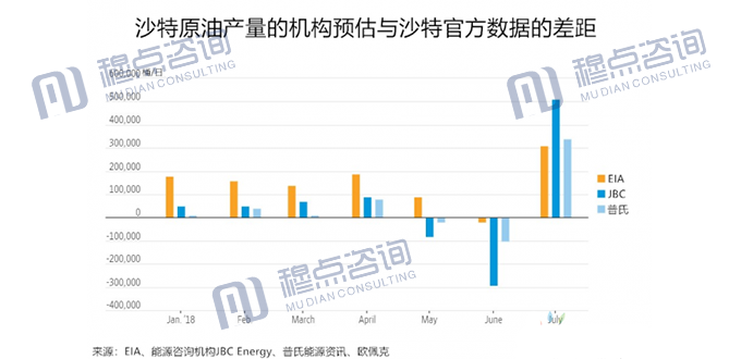 根據美國能源信息提供商普氏能源資訊的數據,上個月沙特的產量增加至1060萬桶/日,與2016年歷史峰值差距很小,也接近美國能源信息署(EIA)給出的預期。彭博的石油公司和船舶跟蹤則顯示,沙特7月產量為1065萬桶/日,這與沙特官方公布的數據幾乎相差了50萬桶/日。