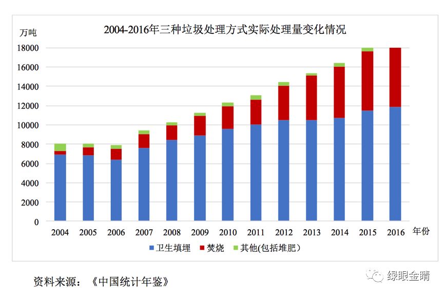 垃圾處理有三種形式:填埋焚燒及其它(堆肥等)。受制于城市土地資源限制,焚燒是其中增長最快的處理方式,2004-2016年,焚燒復(fù)合增長率達(dá)26.27%,目前約占1/3份額。預(yù)計還有1倍增長空間。根據(jù)E20研究院測算,到2020年,我國垃圾焚燒處理率將達(dá)到50%,市場投資空間、建設(shè)空間約在1,000億元左右。
