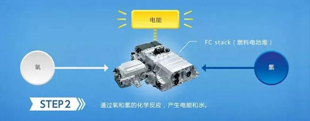 Mirai的工作原理,通過電解水制氫,再把氫氣加入車內(nèi)發(fā)生化學(xué)反應(yīng)驅(qū)動電機(jī)為車提供動力。