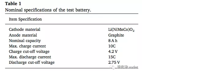 試驗(yàn)中采用的電池參數(shù)如下表所示,電池容量為8Ah,正極NCM材料,負(fù)極為石墨類材料。測試采用Arbin測試設(shè)備進(jìn)行,在整個循環(huán)過程中電池?cái)R置在25攝氏度的恒溫箱中,減少溫度對電池衰降的影響。