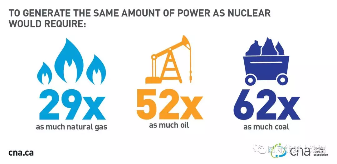 加拿大核電協(xié)會(Canadian Nuclear Association)旗幟鮮明地宣傳核電的優(yōu)越性,制作了以下一組信息圖,以數(shù)據(jù)說話——