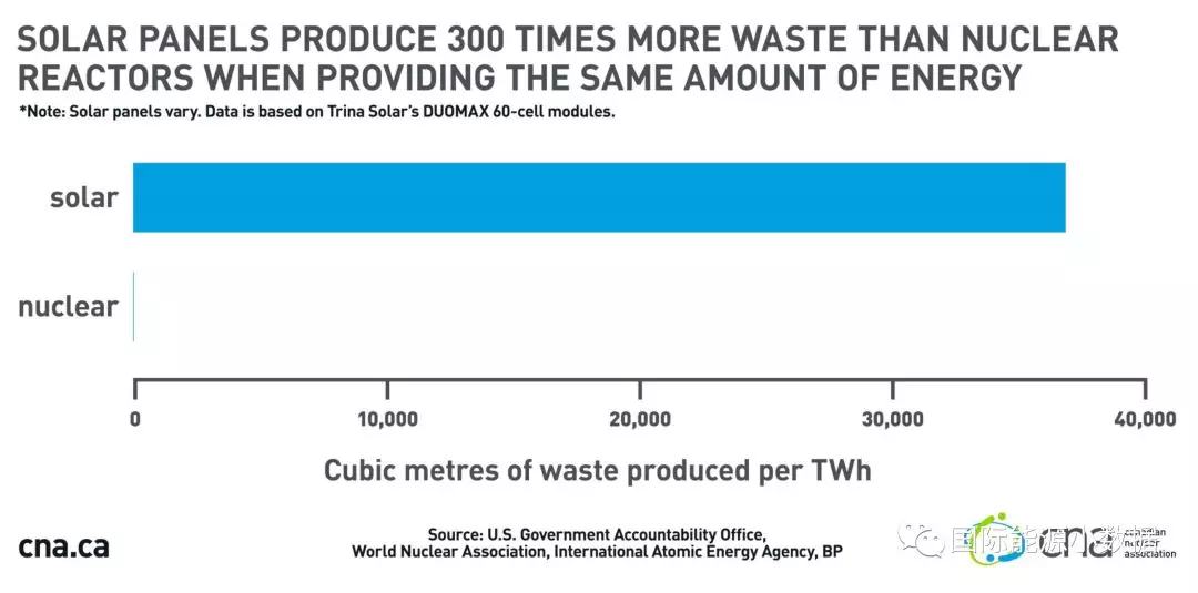 4)Solar panels and waste(光伏板和廢棄材料:同等發(fā)電量,光伏產(chǎn)生的廢棄物是核電的300倍)