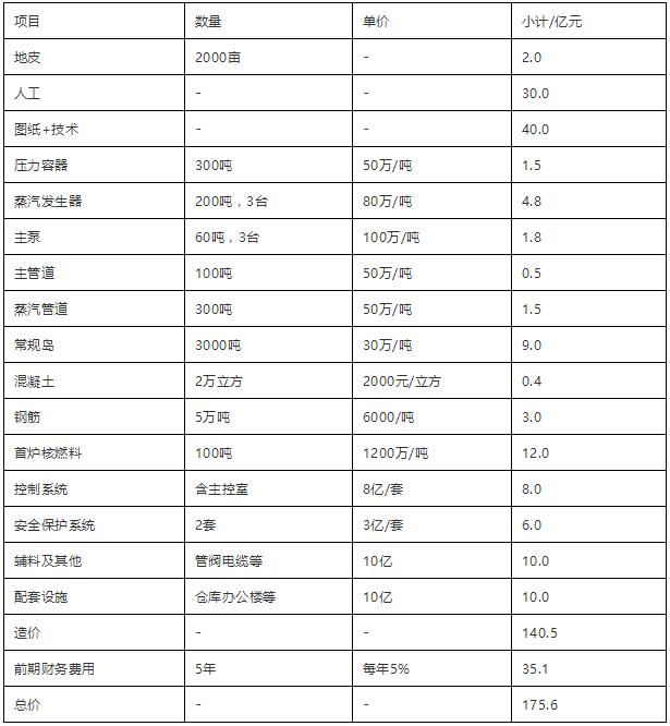 從中我們可以看到,建造一個100萬千瓦的核電廠,主要的費(fèi)用有這樣幾大塊: