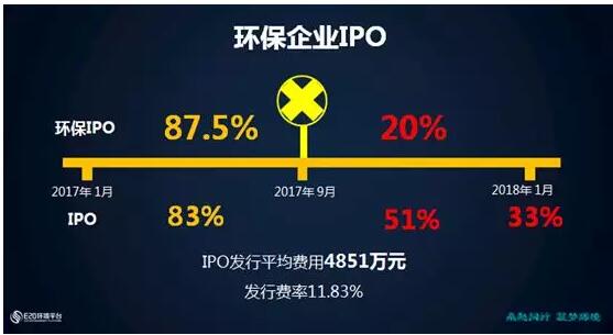 據(jù)E20研究院數(shù)據(jù)統(tǒng)計,去年9月以來系列調(diào)整,IPO通過率整體降低,環(huán)保IPO通過率更是低于整體水平:去年9月份之前,整個IPO通過率是83%,環(huán)保的IPO通過率是87.5%;9月之后有了很多調(diào)整,IPO整體通過率降到51%,環(huán)保IPO通過率則低于整體,降至20%。
