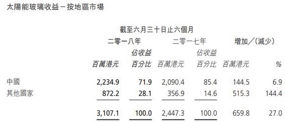 截止2018年6月30日,光伏電站發(fā)電收益為945.8百萬(wàn)港元,同比增長(zhǎng)28.8%,毛利率增長(zhǎng)25.7%。