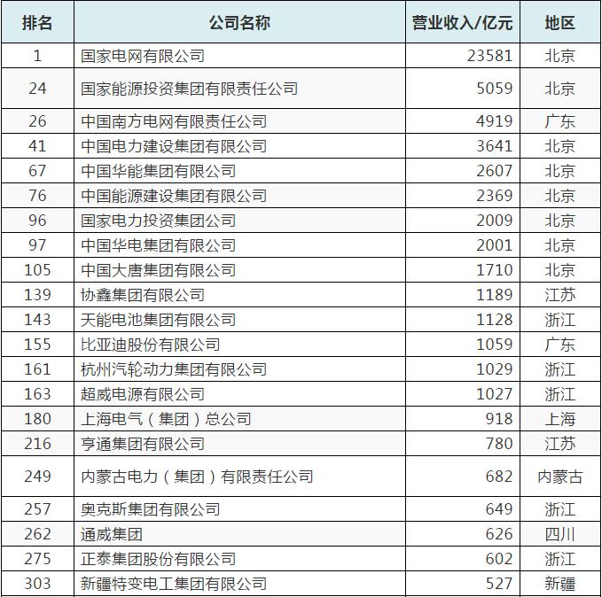國家電網(wǎng)有限公司以23581億元營收位列榜首。另外還有2家電網(wǎng)企業(yè)入圍,中國南方電網(wǎng)有限責任公司以4919億元位居第26位,內蒙古電力(集團)有限責任公司以682億元位居第249位。