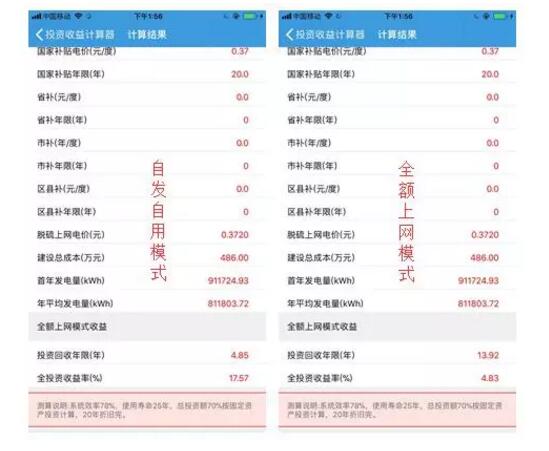 投資收益率及上網(wǎng)模式分析,以唐山市路南區(qū)為例:
