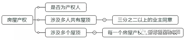 (2)房屋產(chǎn)權(quán)人:主要核實(shí)下屋頂?shù)某鲎馊耸欠駷榉课莸漠a(chǎn)權(quán)人,如果不是需要房屋產(chǎn)權(quán)人授權(quán)并追認(rèn);對于涉及多個屋頂?shù)捻?xiàng)目,需要和每一個房屋產(chǎn)權(quán)人簽訂租賃協(xié)議;對于涉及多人共有屋頂?shù)捻?xiàng)目,應(yīng)當(dāng)經(jīng)專有部分占建筑物總面積三分之二以上的業(yè)主且占總?cè)藬?shù)三分之二以上的業(yè)主同意。