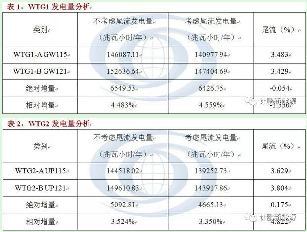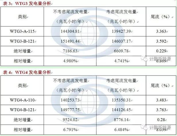 根據(jù)上述4個(gè)表格的計(jì)算結(jié)果顯示,在控制風(fēng)機(jī)尾流合理的情況下,使用長(zhǎng)葉片的風(fēng)機(jī)會(huì)不同程度地提升風(fēng)電場(chǎng)整體發(fā)電量。