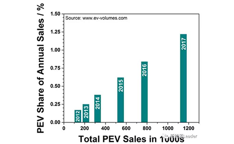 回顧近5年新能源汽車的發(fā)展可以看到,雖然各大廠商都投入了極大的熱情發(fā)展新能源汽車,但是鑒于內(nèi)燃機(jī)技術(shù)經(jīng)過上百年的發(fā)展已經(jīng)積累了極大的優(yōu)勢(shì),因此在電動(dòng)汽車發(fā)展出初期注定是步履維艱,2012年全球范圍內(nèi)也僅僅售出了13萬4千輛新能源汽車(PEV),但隨著新能源技術(shù)和材料的不斷進(jìn)步,以及各國(guó)政府的大力推動(dòng)(例如中國(guó)、美國(guó)、挪威和德國(guó)等),PEV在過去的五年時(shí)間里呈現(xiàn)了跨越式的發(fā)展,在2017年全球的PEV的銷量首次突破了100萬輛,比2012年增長(zhǎng)了7倍多,特別是近年來銷售數(shù)量呈現(xiàn)加速上漲的態(tài)勢(shì),2017年銷售量比2016年增長(zhǎng)50%以上,新能源汽車的市場(chǎng)份額也首次超過1%。