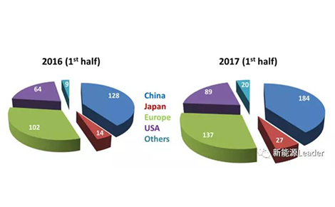 雖然言辭上我們相對(duì)保守,但中國(guó)卻是全球表現(xiàn)最為亮眼的新能源汽車市場(chǎng),中國(guó)新能源汽車在2017年上半年的銷量相比于2016年上半年增長(zhǎng)60%以上,并且充電樁的數(shù)量以6,000個(gè)/月的速度快速增長(zhǎng),已經(jīng)擁有超過450,000個(gè)公共和私人充電樁,極大的便利了電動(dòng)汽車的使用,也刺激了新能源汽車的需求。