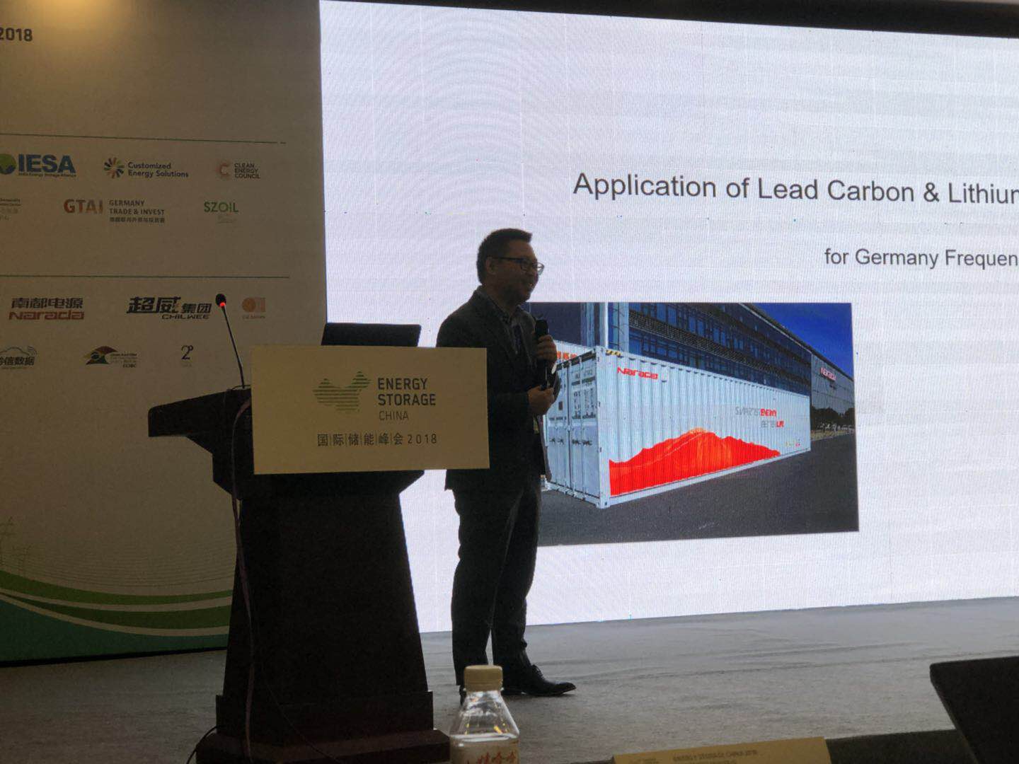 我今天講的主題是關(guān)于德國調(diào)頻應(yīng)用的儲能系統(tǒng),分兩種技術(shù)領(lǐng)域,鉛炭和鋰電,鋰電我們這邊采用的是磷酸鐵鋰。