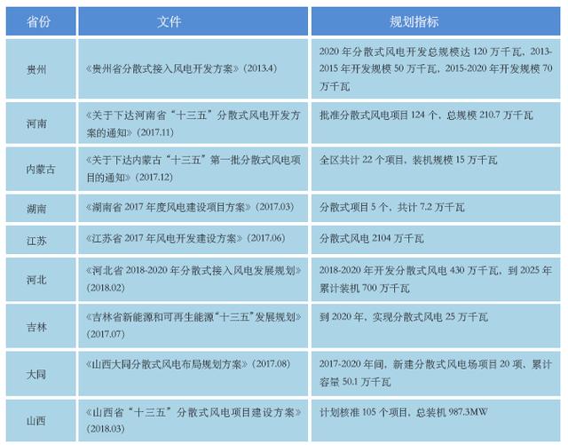 隨著分散式配套政策陸續(xù)推出,2017 年年中能源局鼓勵各省市盡快出臺本地分散式建設(shè)規(guī)劃。截至2018 年3 月中旬,已有多省積極響應(yīng)號召,內(nèi)蒙、陜西省展開分散式申報工作,河北、河南及山西三省下發(fā)建設(shè)規(guī)劃,2018-2020年期間僅此三省,分散式規(guī)劃規(guī)模已超過7GW。隨著其他省份陸續(xù)跟進(jìn),預(yù)計我國分散式風(fēng)電每年核準(zhǔn)規(guī)模有望突破10GW,2019 年后每年新增裝機(jī)5GW 以上,從而為我國風(fēng)電行業(yè)的進(jìn)一步發(fā)展提供有力支撐。