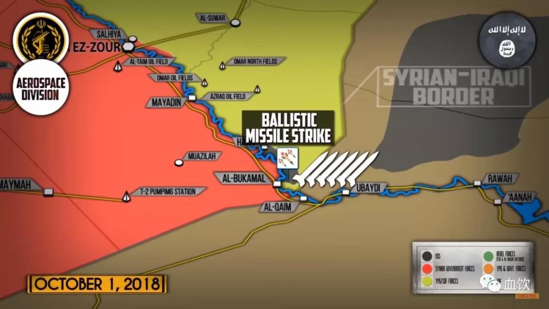 10月1日中國國慶節(jié)這一天,據(jù)伊朗法爾斯通訊社報道,為報復(fù)9月22日恐怖分子在伊朗阿瓦士市發(fā)生的塔克菲里恐怖襲擊事件,伊朗伊斯蘭革命衛(wèi)隊于當(dāng)?shù)貢r間凌晨2點(diǎn)發(fā)動代號為Zarbat-eMoharram的軍事行動,發(fā)射了6枚彈道地對地導(dǎo)彈打擊敘利亞幼發(fā)拉底河?xùn)|岸地區(qū)ISIS總部所在地哈金,同時出動7架無人機(jī)對該地區(qū)恐怖分子陣地發(fā)動襲擊。打擊ISIS同時,伊朗還炮擊了伊拉克境內(nèi)的伊朗庫爾德分裂組織PDKI武裝。