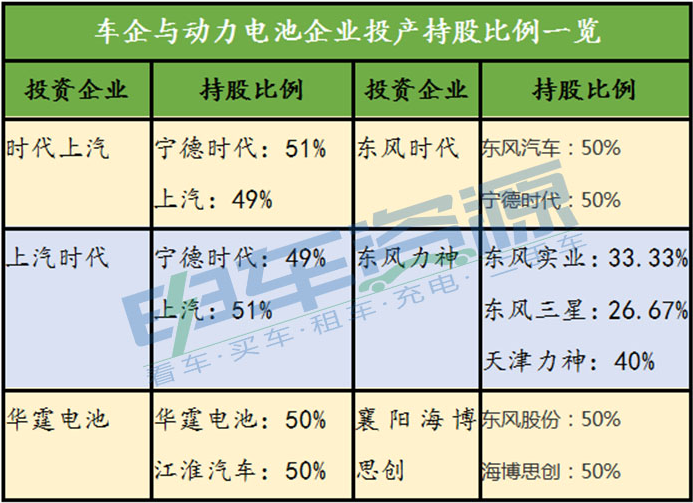 記者從寧德時(shí)代、國(guó)軒高科、天津力神、華霆、海博思創(chuàng)等動(dòng)力電池企業(yè)與東風(fēng)、上汽、廣汽、北汽、奇瑞等整車(chē)企業(yè)的持股比例可以看出,雙方之間的合作基本上持平,并且車(chē)企合作的重心在動(dòng)力電池系統(tǒng)。