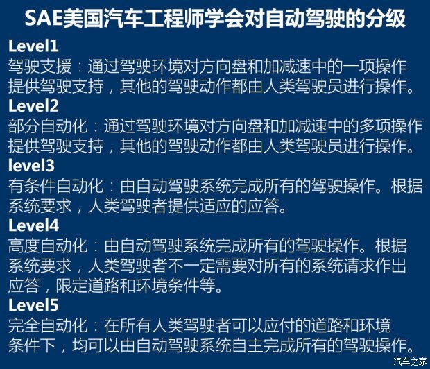 根據(jù)SAE美國汽車工程師學(xué)會對自動駕駛的分級,自動駕駛系統(tǒng)能否完成所有的駕駛操作(如變道、超車、駛離高速或靠邊停車等)是Level3系統(tǒng)和Level2系統(tǒng)的最大差別。為了實(shí)現(xiàn)Level3系統(tǒng)的功能,奧迪A8需要更多的傳感器來監(jiān)控路況環(huán)境來提升系統(tǒng)的可靠性,同時(shí)也需要復(fù)雜的控制策略來應(yīng)對突發(fā)情況(前車突然緊急制動、加塞、行人突然沖出馬路)以避免交通事故。