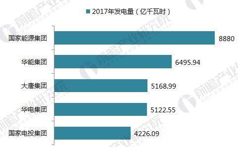圖表3:2017年五大發(fā)電集團發(fā)電量對比(單位:億千瓦時)
