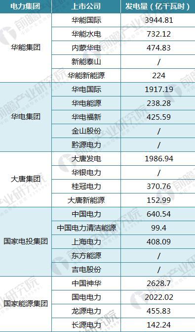 二、發(fā)電量:國家能源集團發(fā)電量最高,為8880億千瓦時