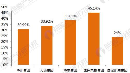 圖表5:2017年五大發(fā)電集團清潔能源比重情況(單位:%)