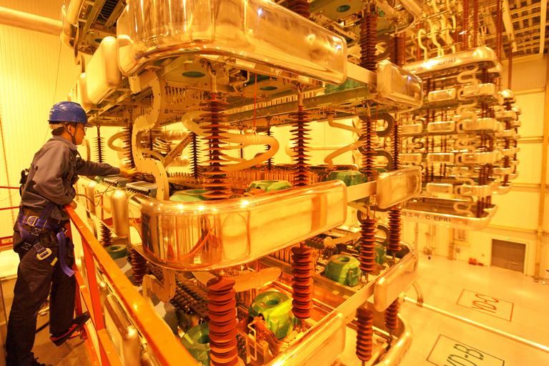 國網(wǎng)山東電力的檢修工人對特高壓換流閥進行檢修