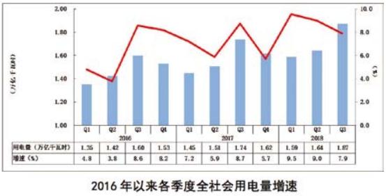 一是全國(guó)發(fā)用電量繼續(xù)保持較快增長(zhǎng)。8%的增速延續(xù)了上半年的良好增長(zhǎng)勢(shì)頭。增長(zhǎng)動(dòng)力主要來(lái)自以下四個(gè)方面 :電力市場(chǎng)化改革促進(jìn)潛在用電需求釋放 ;工業(yè)領(lǐng)域電能替代深入推進(jìn) ;消費(fèi)升級(jí)推動(dòng)三產(chǎn)及居民空調(diào)負(fù)荷保有量及使用率上升 ;部分工業(yè)企業(yè)為規(guī)避秋冬季環(huán)保限產(chǎn)和外貿(mào)風(fēng)險(xiǎn)而提前安排生產(chǎn)。