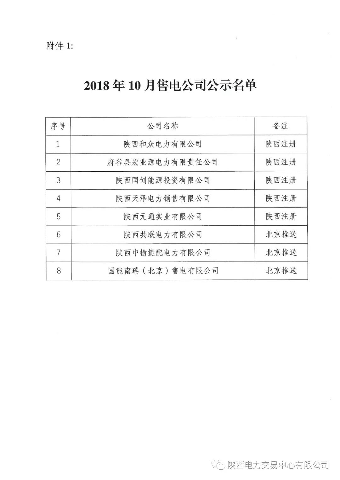 陜西公示8家售電公司(3家北京推送)及2家售電公司的注冊信息變更申請