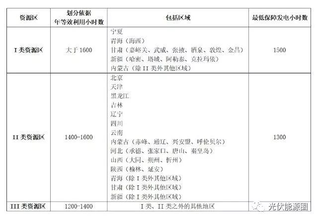 太陽(yáng)能資源區(qū)的劃分依據(jù)為年等效利用小時(shí)數(shù),年等效利用小時(shí)數(shù)大于1600小時(shí)為I類資源區(qū),年等效利用小時(shí)數(shù)在1400-1600小時(shí)之間為II類資源區(qū),年等效利用小時(shí)數(shù)在1200-1400小時(shí)之間為III類資源區(qū)。
