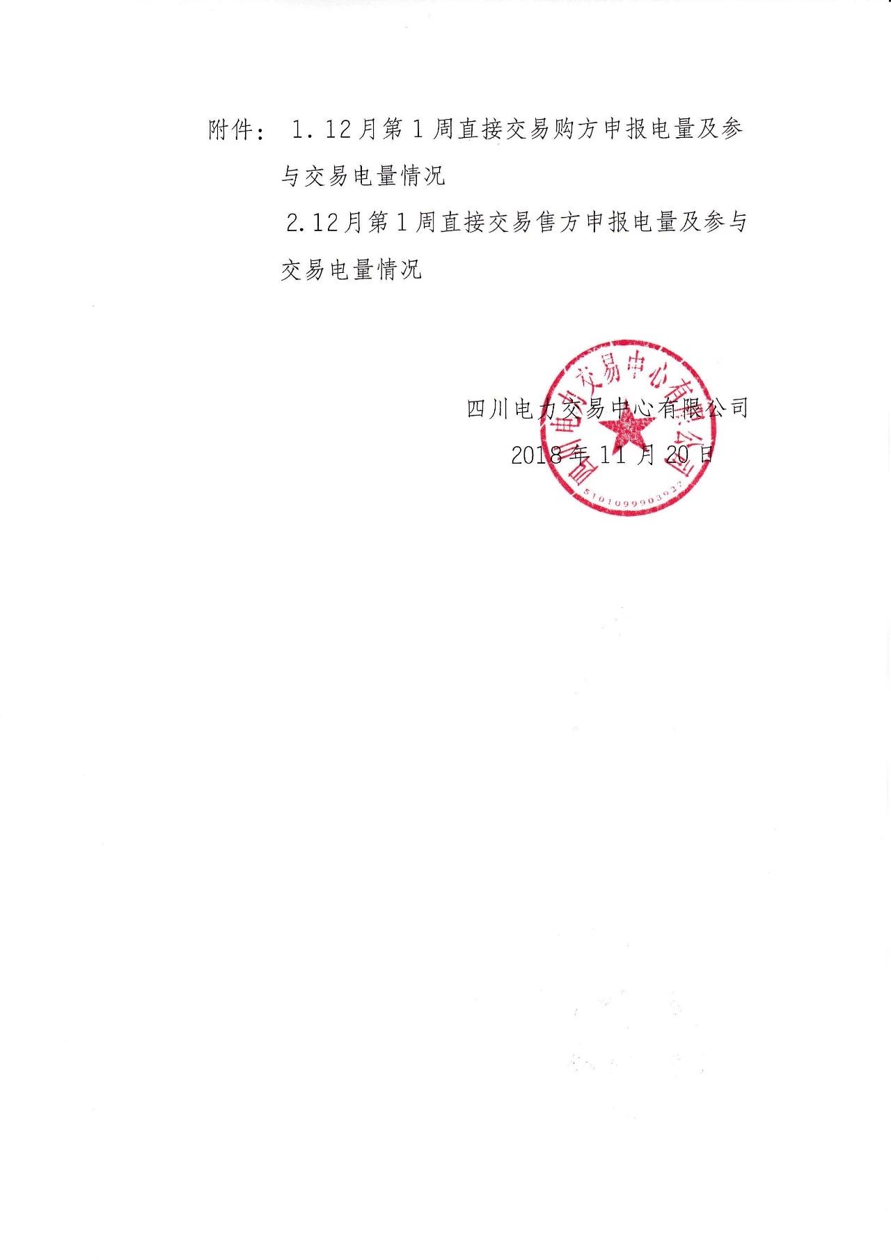 四川2018年12月第1周直接交易:電量需求2.2億千瓦時(shí)