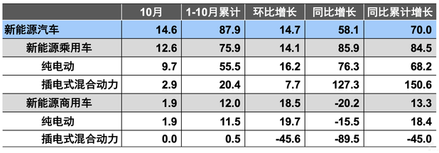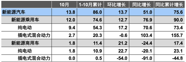 2018年10月新能源汽車(chē)銷(xiāo)售情況:(單位 :萬(wàn)輛、%)