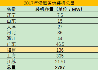2017年,我國海上風電累計裝機接近2.8GW,據“十三五”規(guī)劃,到2020年我國海上風電裝機總量將達到5GW,作為海上裝機主力的沿海6省還有非常大的市場空間。
