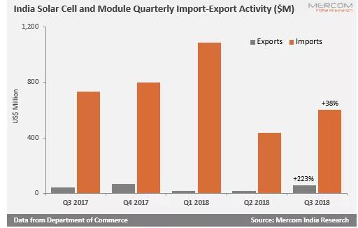 2018年第三季度印度太陽能進(jìn)口數(shù)量大幅飆升。